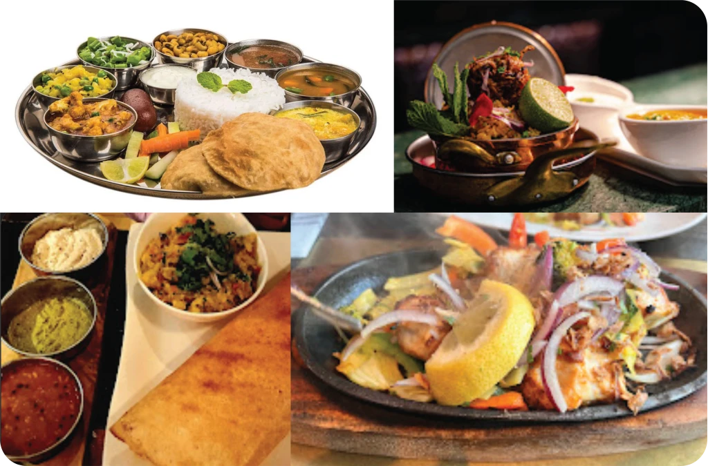 Kryddmarinerad och grillad kycklingbröstfilégryta / Kycklingbröstfilégryta med mango / Grillad vitlöksmarinerad kycklingbröstfilé / Kryddmarinerad och grillad jätteräksgryta med stekt lök, paprika, tomat, friterad lök, ingefära, färsk koriander, garam masala och chili-pickles, tillagad i en tomat- och cashewnötsblandning med grönsaksbuljong i mild currysås.